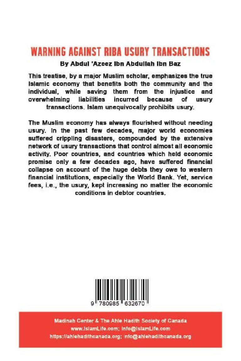 This treatise, by a major Muslim scholar, emphasizes the true Islamic economy that benefits both the community and the individual, while saving them from the injustice and overwhelming liabilities incurred because of usury transactions. Islam unequivocally prohibits usury.
